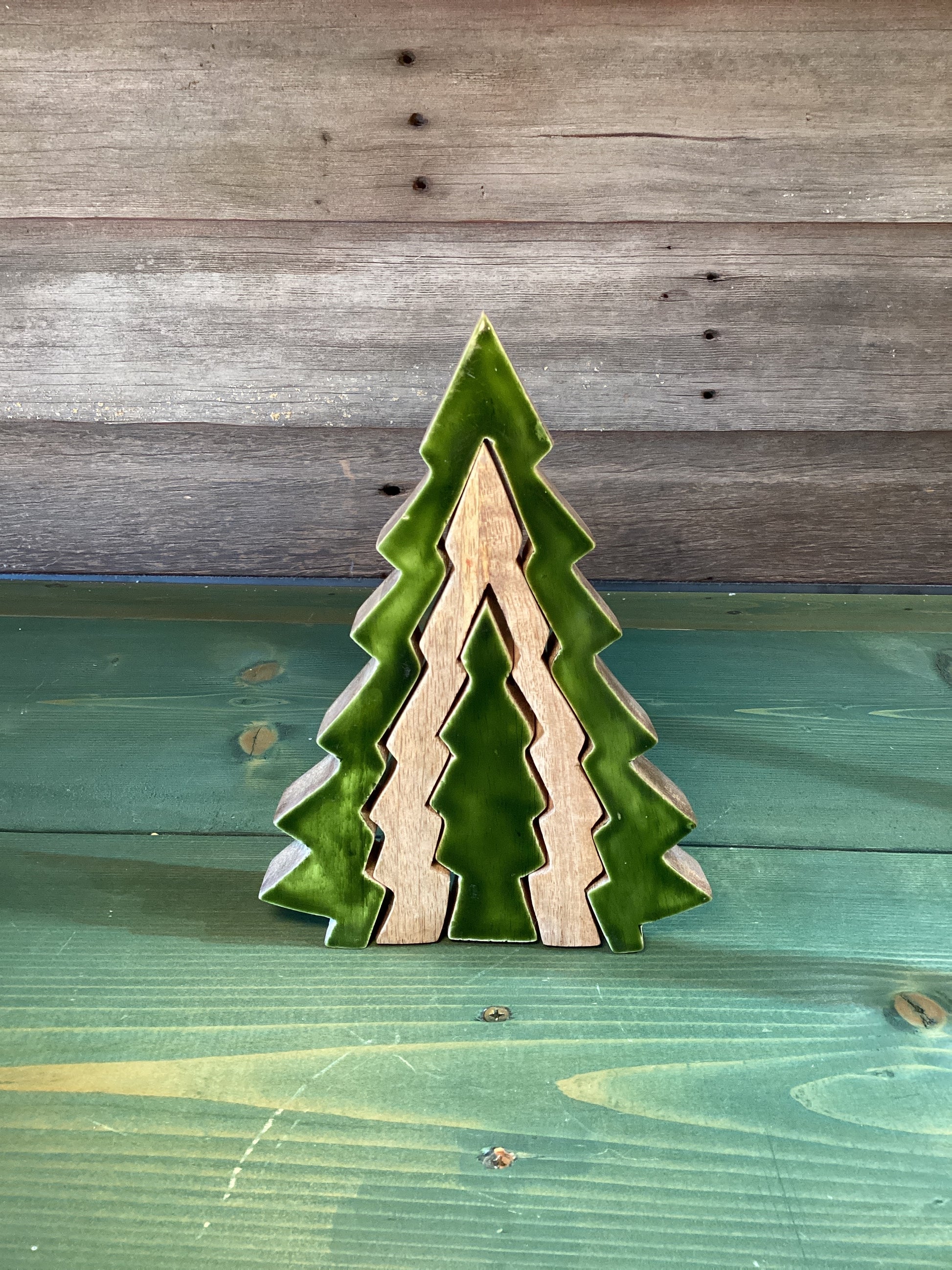 3D Enamel/Wood Green Tree