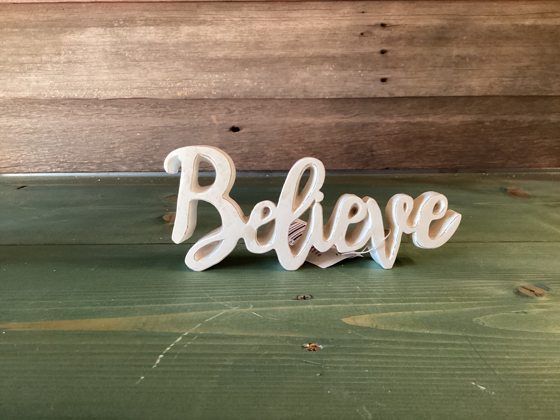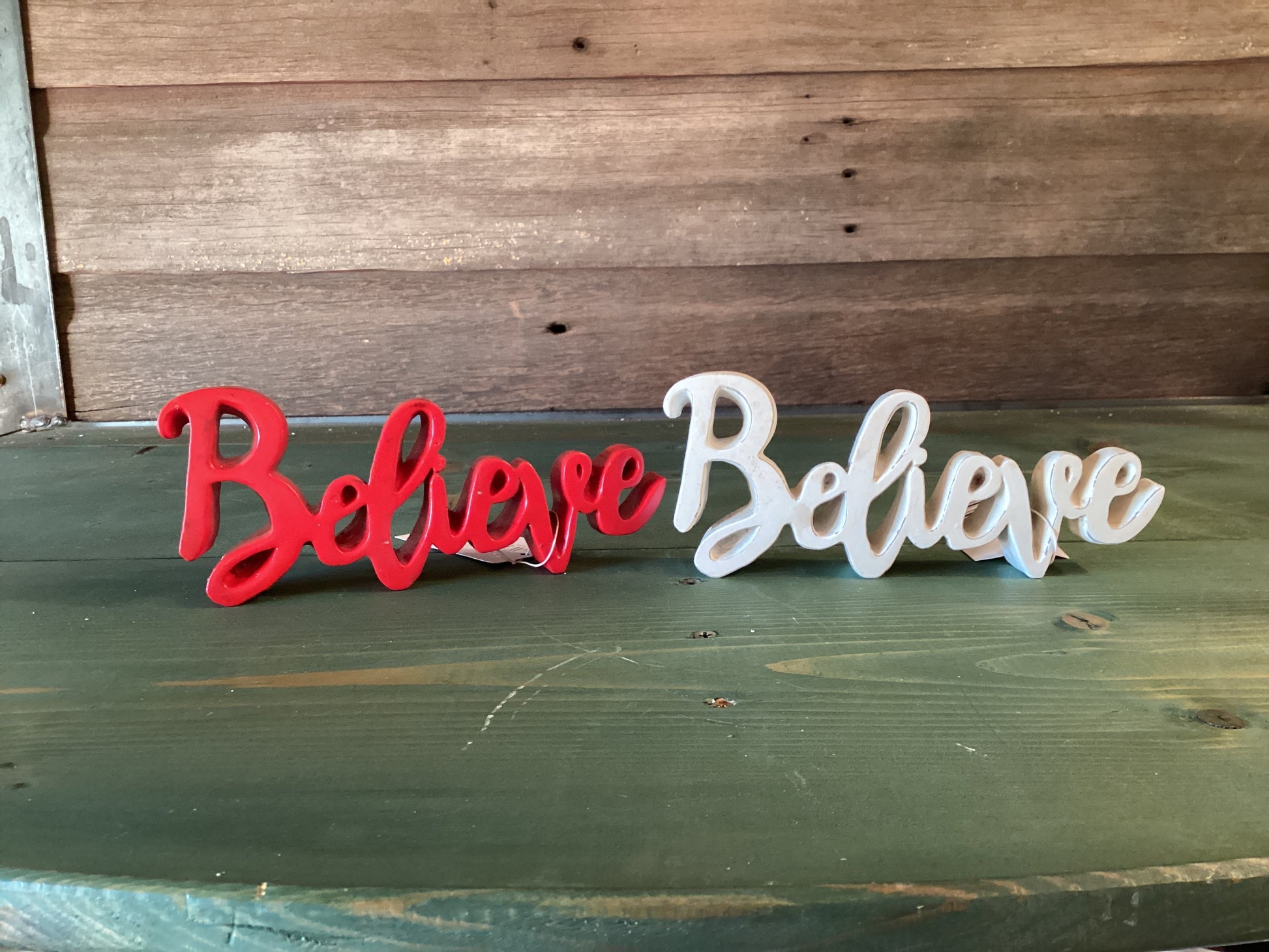 “Believe” Script Resin Red/White